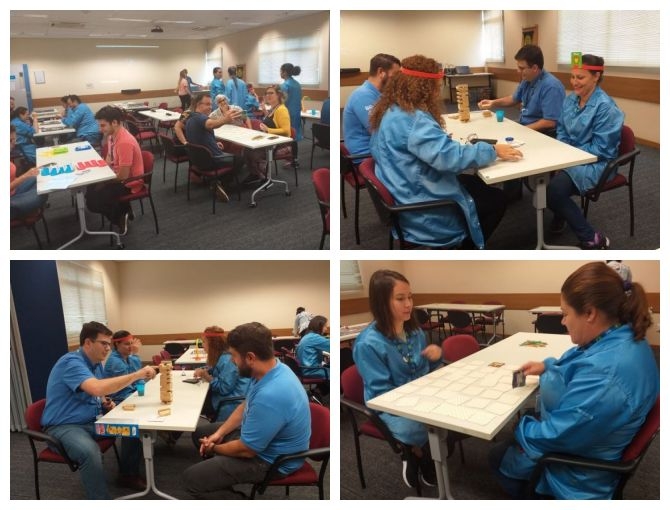 Aberta para todos os colaboradores, a sala contava com jogos como dama, xadrez, quebra-cabeças, resta um, cilada, entre outros. Quem participou pôde desfrutar de momentos com desafio, além de muita risada e diversão.