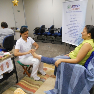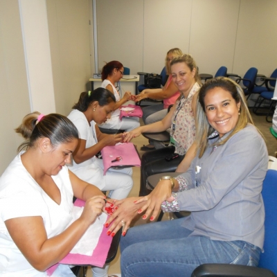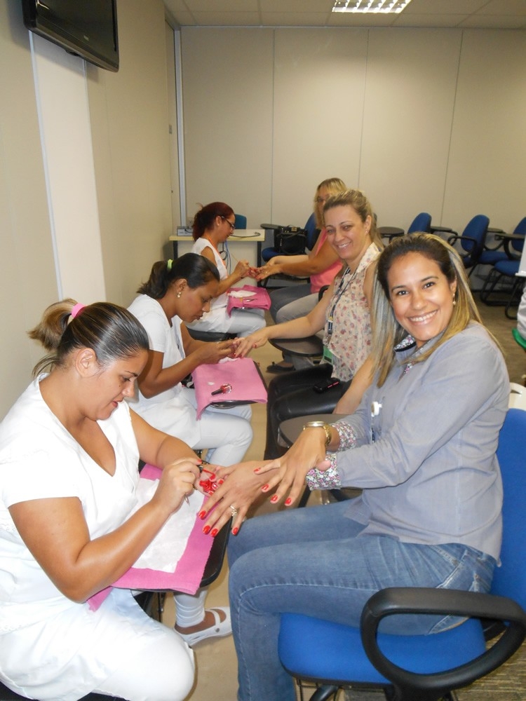 Cerca de 50 mulheres da unidade foram atendidas, tendo à disposição manicures cuidando das mãos, além de conhecerem os benefícios da reflexologia podal.