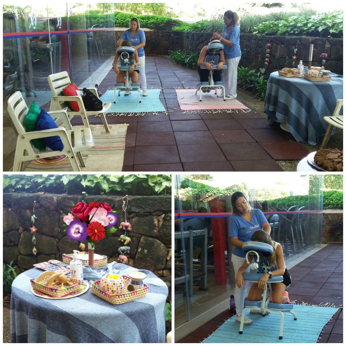 Sessões de Quick Massage foram ministradas às mulheres de uma academia de musculação presente em um clube de Campinas e às colaboradoras de uma empresa parceira de Hortolândia/SP. Além de sensações de bem-estar, a Quick Massage proporciona benefícios como alívio para os casos de dor, melhora na irrigação sanguínea, melhora no movimento articular, entre outros.