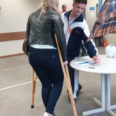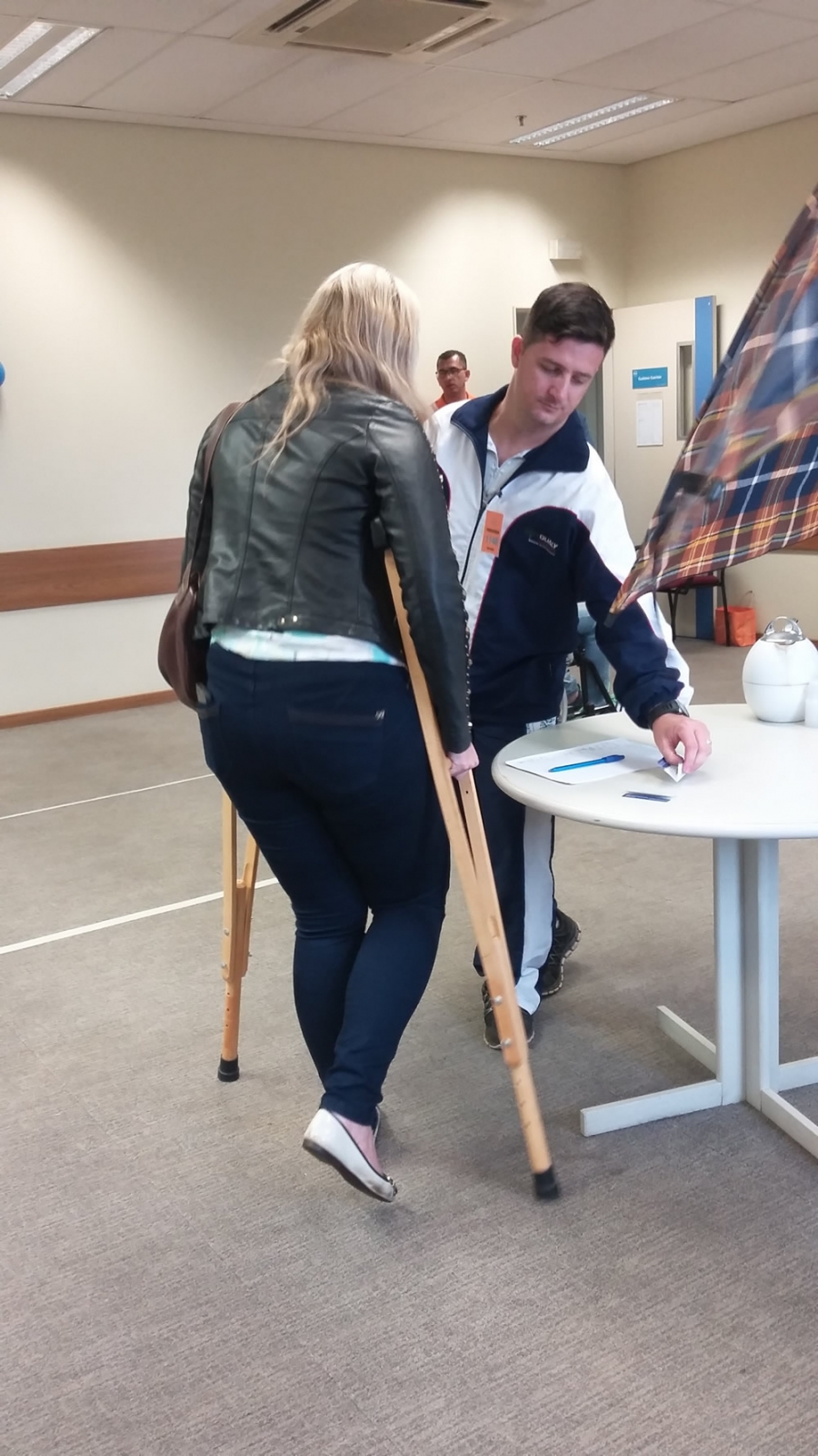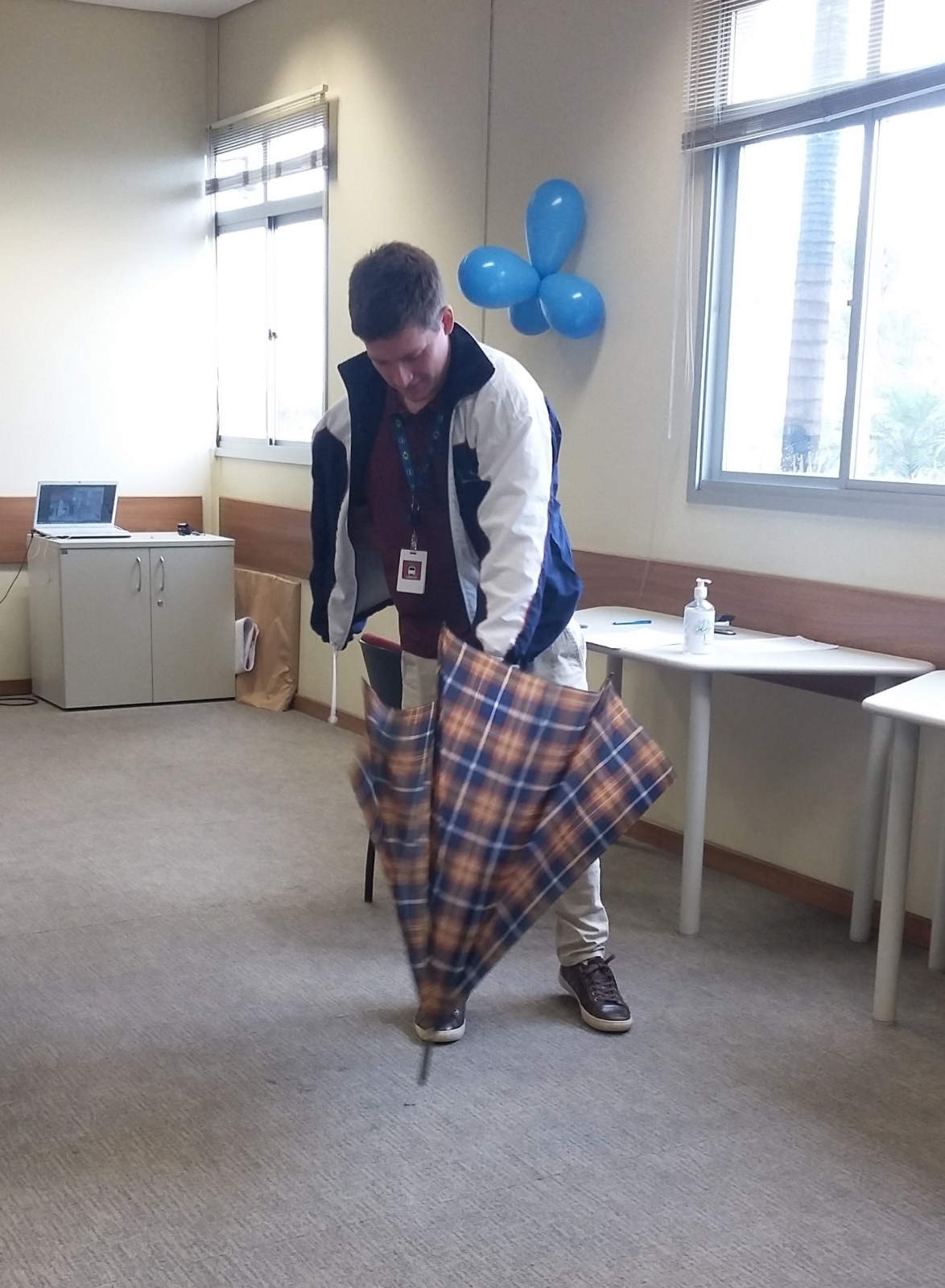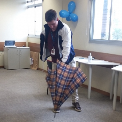 Naquela data, foi preparado um circuito com estações para que os colaboradores pudessem vivenciar situações às quais as pessoas com deficiências físicas presenciam no dia a dia. Para tanto, foram previstas estações com cadeiras de rodas, muletas, simulação de amputação de um membro superior e deficiência visual.